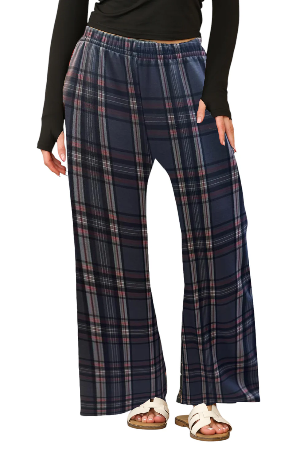 Women's Wide Leg Check Palazzo Trouser