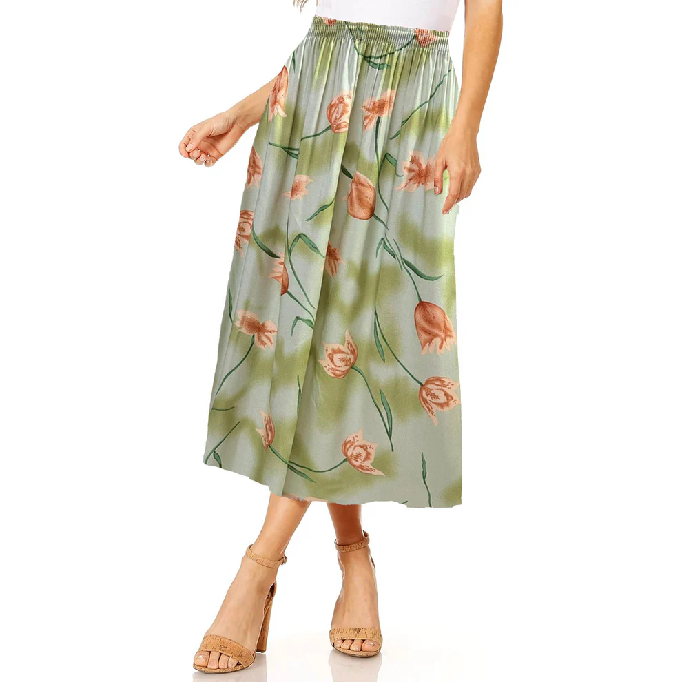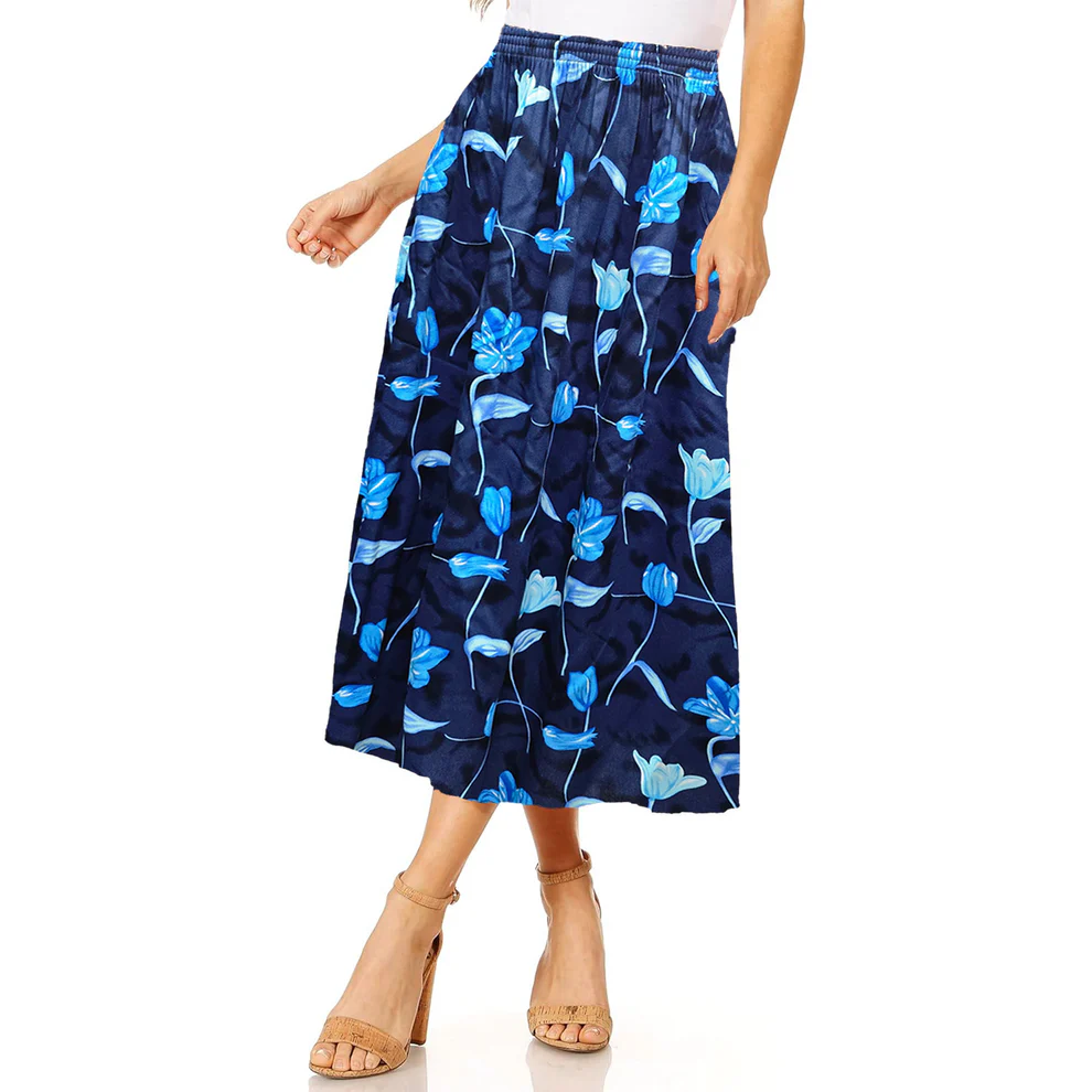 The Women's Floral Midi Skirt is a stylish and comfortable summer essential featuring a lively floral print, a breezy 77 cm mid-length cut, and a stretchy elastic waistband. Made from a soft elastane blend, it offers breathability and flexibility for all-day wear. Suitable for both casual and dressy occasions, it’s available in sizes S to XXL and is easy to care for with machine washability. Perfect for beach trips, picnics, or festive gatherings.